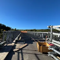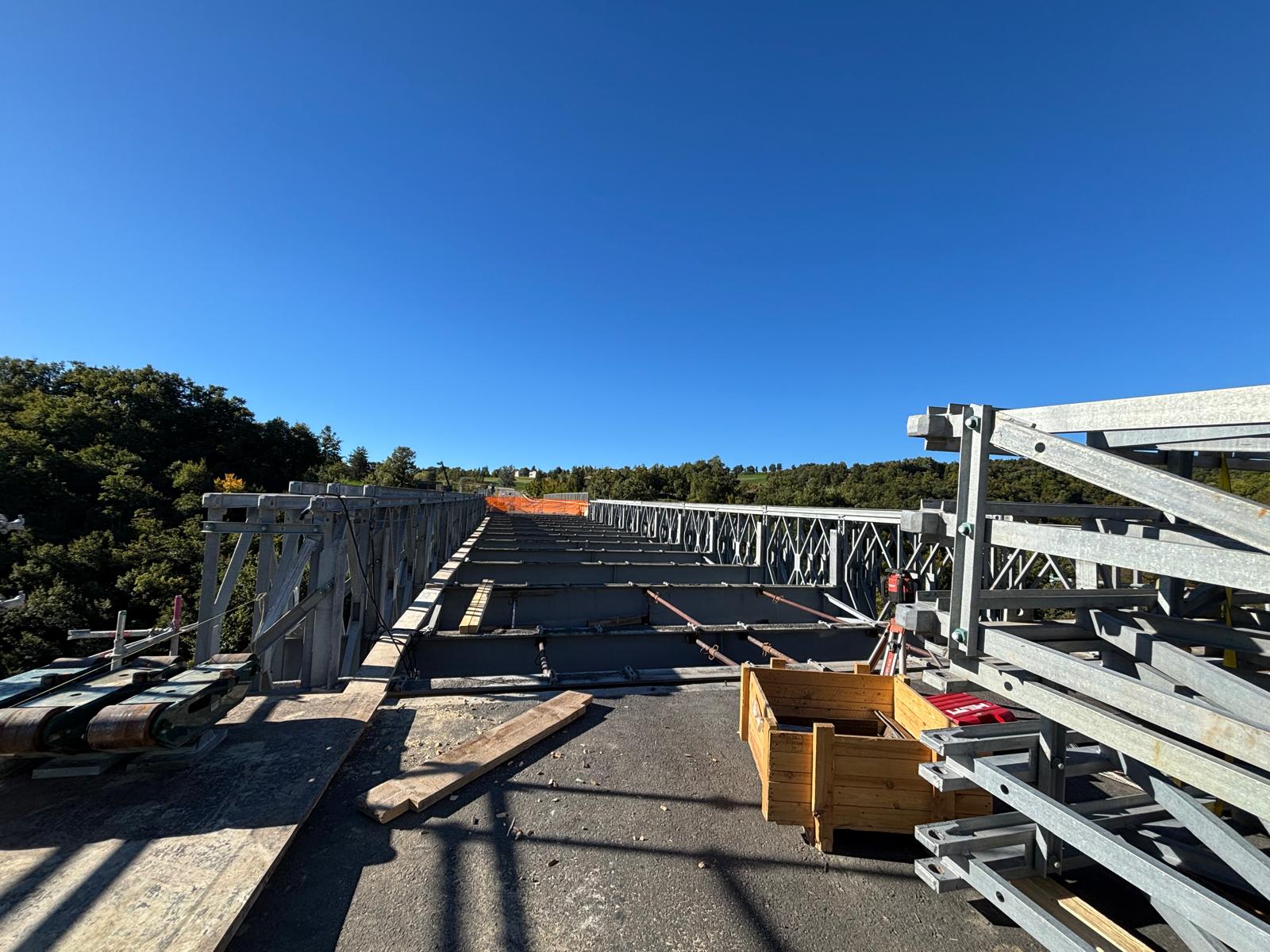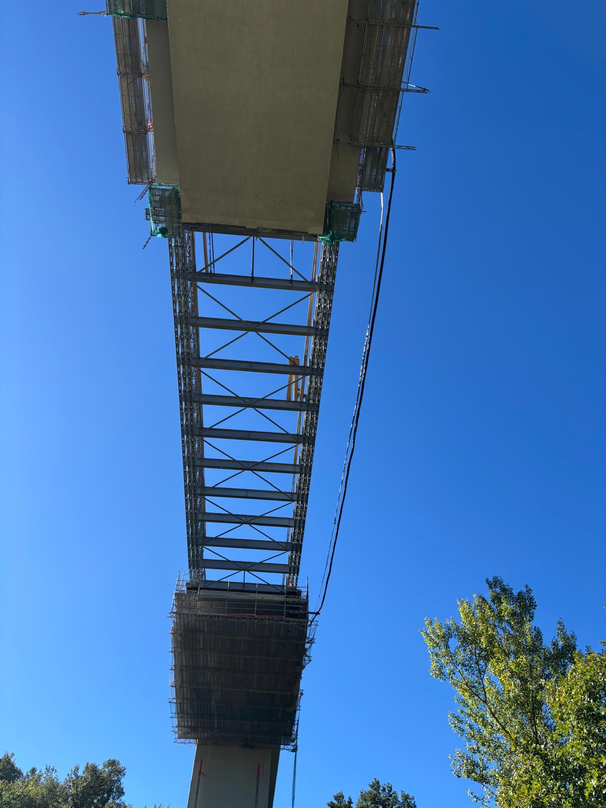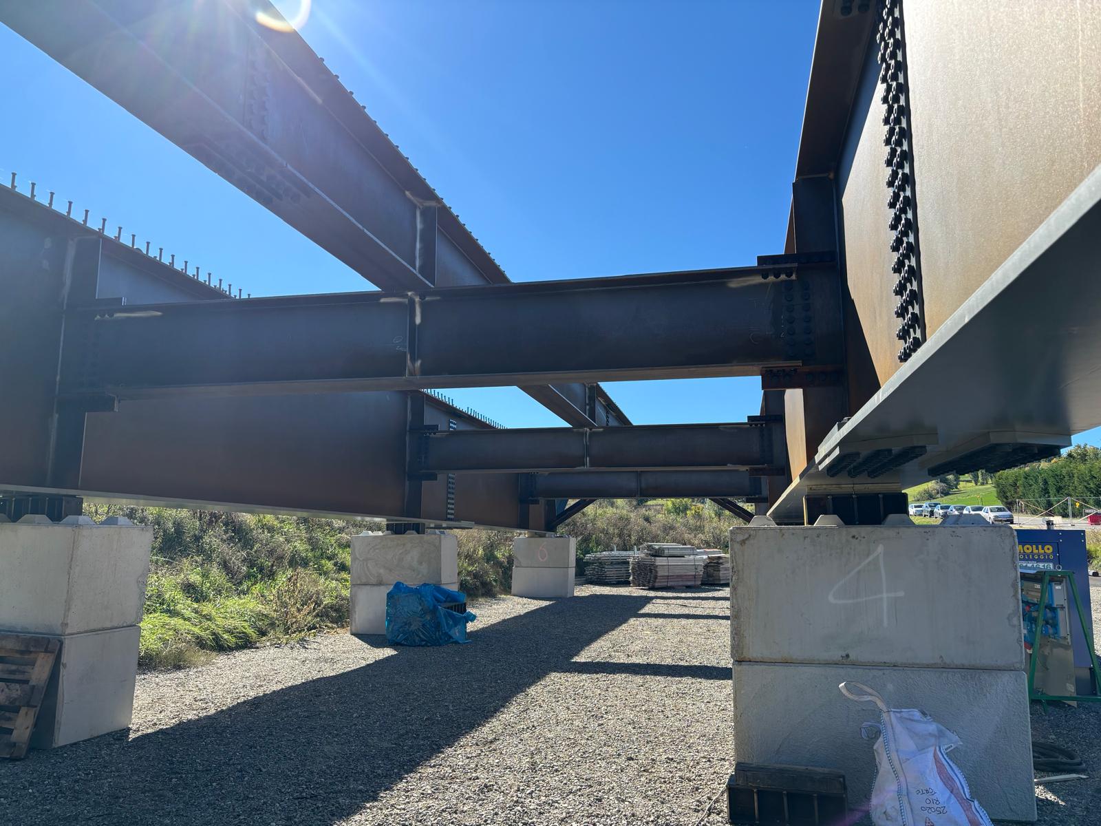 In cantiere al momento procedono le attività di svaro (smontaggio) del ponte bailey e, successivamente saranno eseguiti i lavori di costruzione e realizzazione della nuova campata in acciaio.