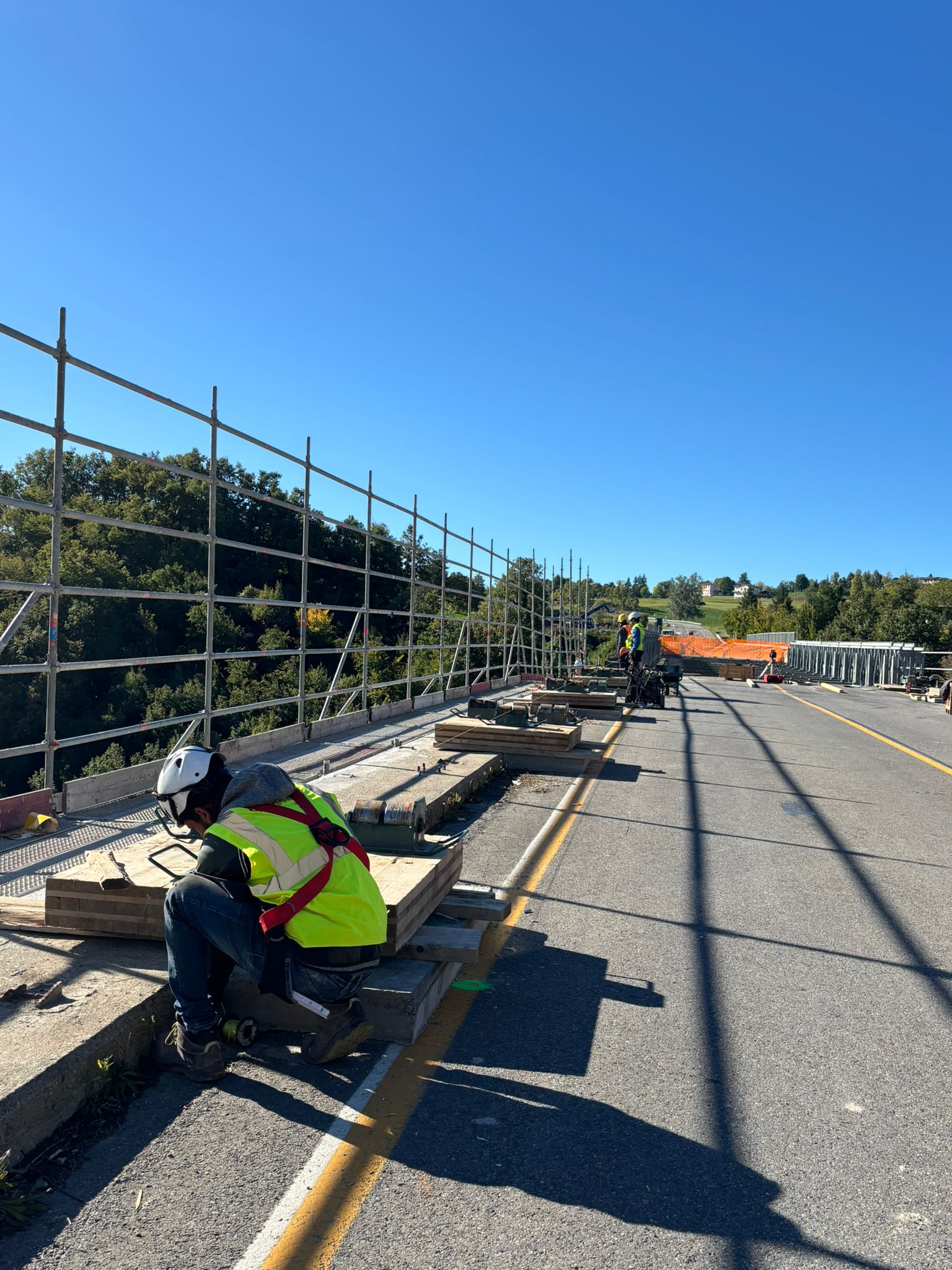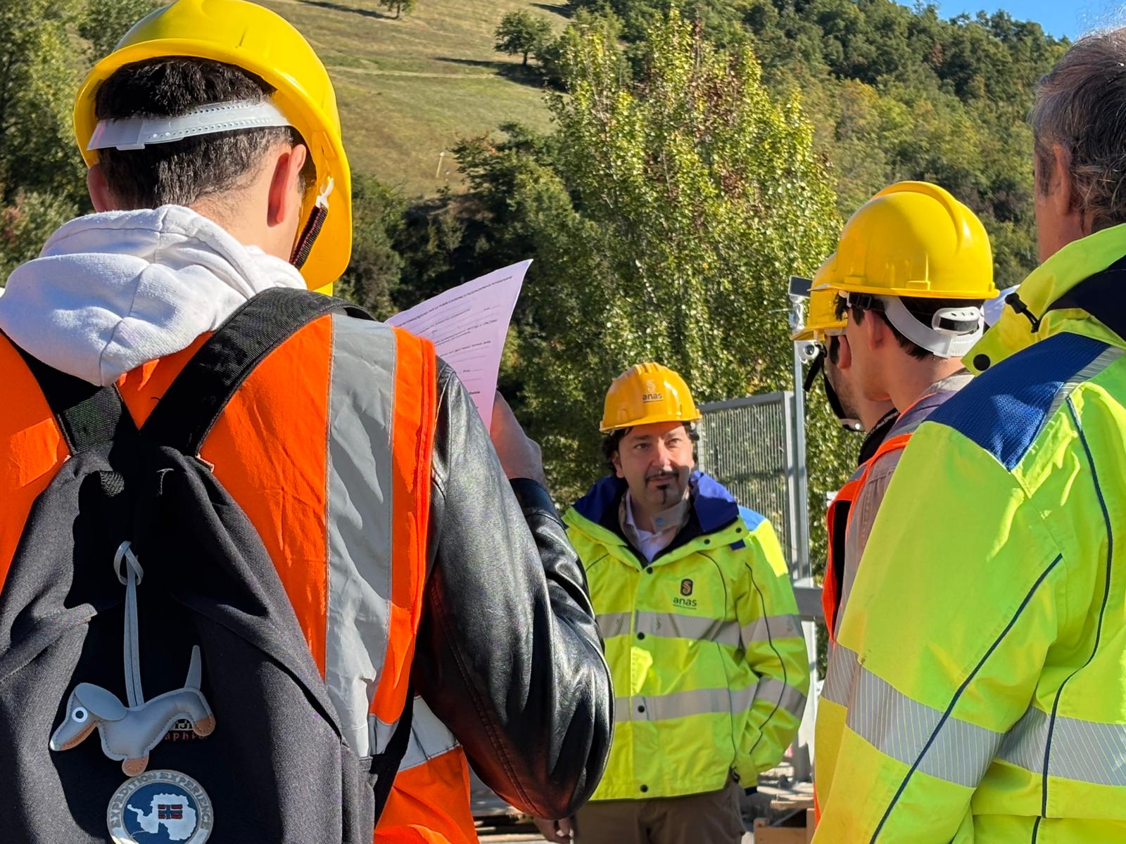 Questa mattina il cantiere ha ospitato gli studenti di "Progetto di ponti" dell'Università di Bologna dove il Professore Stefano Silvestri insieme ai collaboratori Ing. Emma Ghini e Ing. Antonio D'Anna ha tenuto una lezione di approfondimento insieme alla Direzione Lavori Anas ed il progettista.