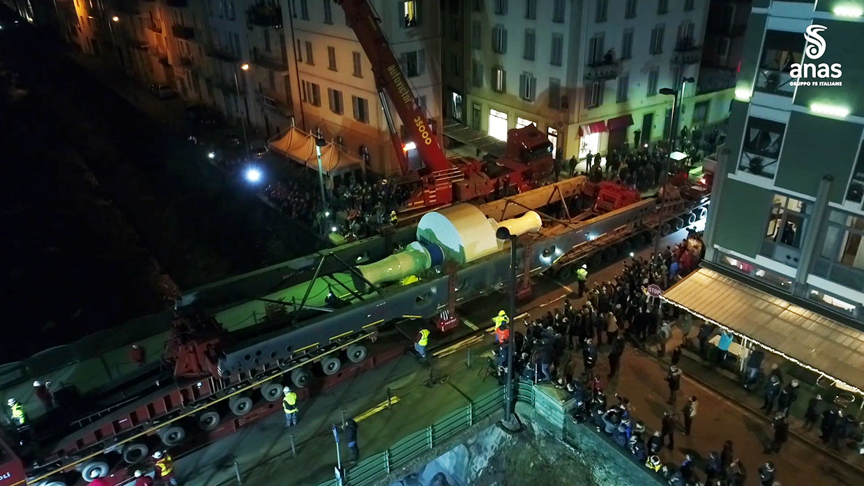 Per limitare i disagi all’utenza, il convoglio si è spostato in orario notturno lungo un percorso di circa 185 km sulla rete statale della regione. Interessate dal transito le strade statali 36 “del Lago di Como e dello Spluga”, 38 “dello Stelvio” e 301 “del Foscagno”, lungo le quali si è reso necessario intervenire mediante la progettazione e la realizzazione di strutture temporanee che hanno consentito lo spostamento in sicurezza del convoglio lungo alcune tratte sensibili.