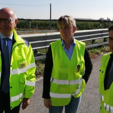 Il sopralluogo è stata l’occasione per verificare il proseguimento dei lavori di ripristino, programmati in seguito all’analisi dell’intero tracciato che ha evidenziato le necessità di intervento in maniera localizzata. Alcuni importanti lavori di risanamento profondo sono infatti già stati avviati, in particolare lungo la corsia di marcia che è naturalmente soggetta ad ammaloramento della pavimentazione, fino ad una profondità di 50 centimetri. Lungo la corsia di sorpasso, meno sollecitata dal transito dei mezzi pesanti, sono invece condotti interventi di ripristino più superficiale che prevedono il rifacimento di uno strato dello spessore di circa 10 centimetri.