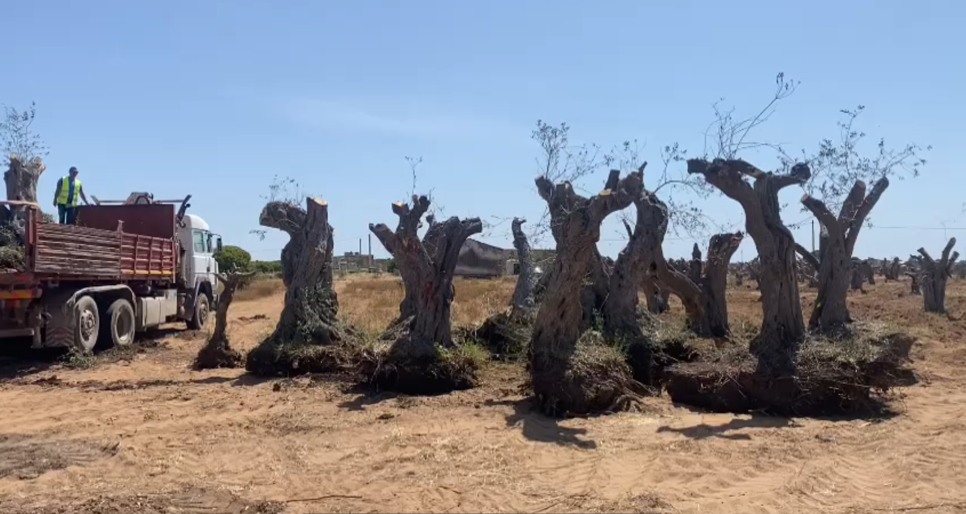 • L’espianto e il trasporto degli alberi verso la “Fattoria della Legalità”, un insieme di terreni del ragusano confiscati alla criminalità