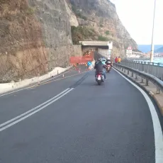 Sono stati completati i primi interventi di messa in sicurezza finalizzati alla riapertura a senso unico alternato della corsia sinistra/lato mare costituiti dal disgaggio e pulizia del versante compreso l’allontanamento di opere protettive ormai danneggiate, l’istallazione di reti protettive a contatto nelle aree private di monte, l’istallazione di una barriera protettiva provvisoria.