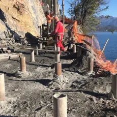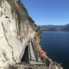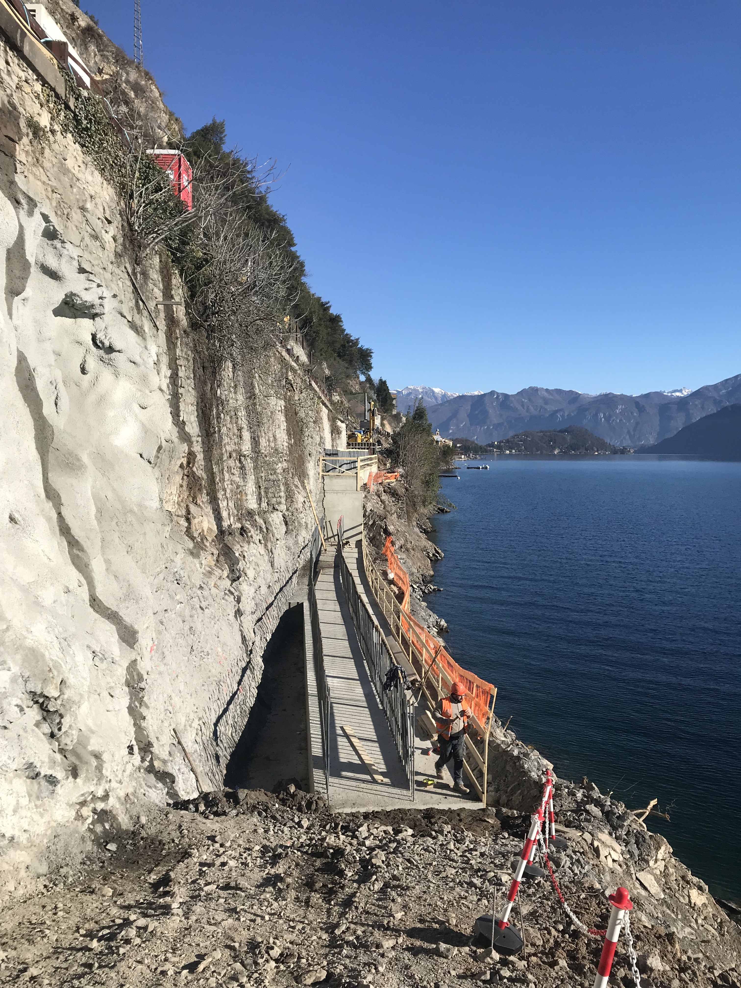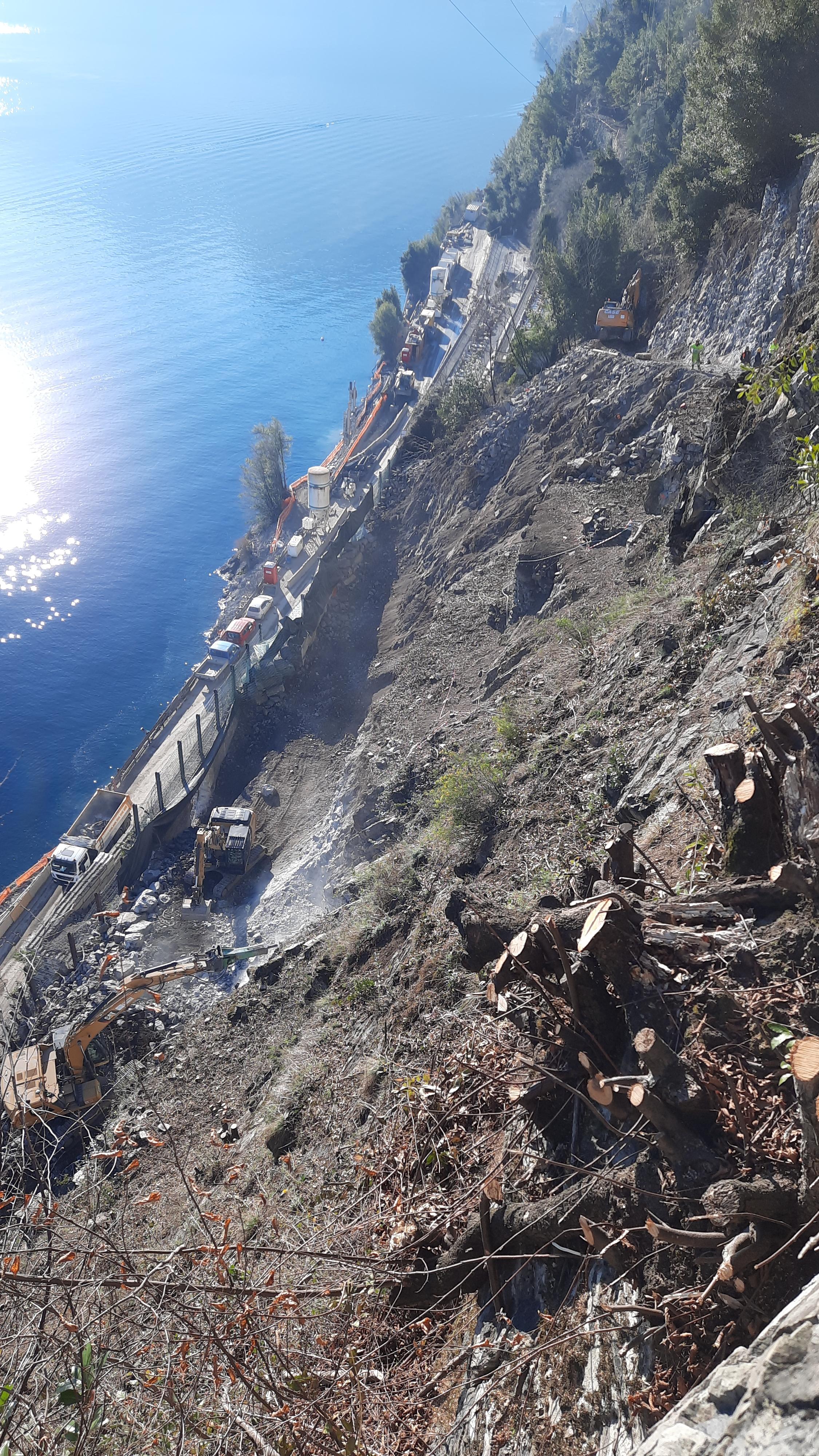 Sono trascorsi quasi 50 (49) giorni dall'inizio lavori di Anas (Gruppo FS Italiane) per la realizzazione della variante alla Tremezzina, le attività proseguono a ritmo serrato. Nell'ultima settimana sono state completate le ricognizioni ed i rilievi tecnici propedeutici alla posa delle barriere paramassi definitive.