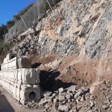 Continuano gli scavi di sbancamento per la formazione dell'imbocco Nord della galleria di Svincolo di Colonno (salto di montone), unitamente alla posa delle reti corticali e delle relative chiodature, sul versante sovrastante il futuro imbocco.