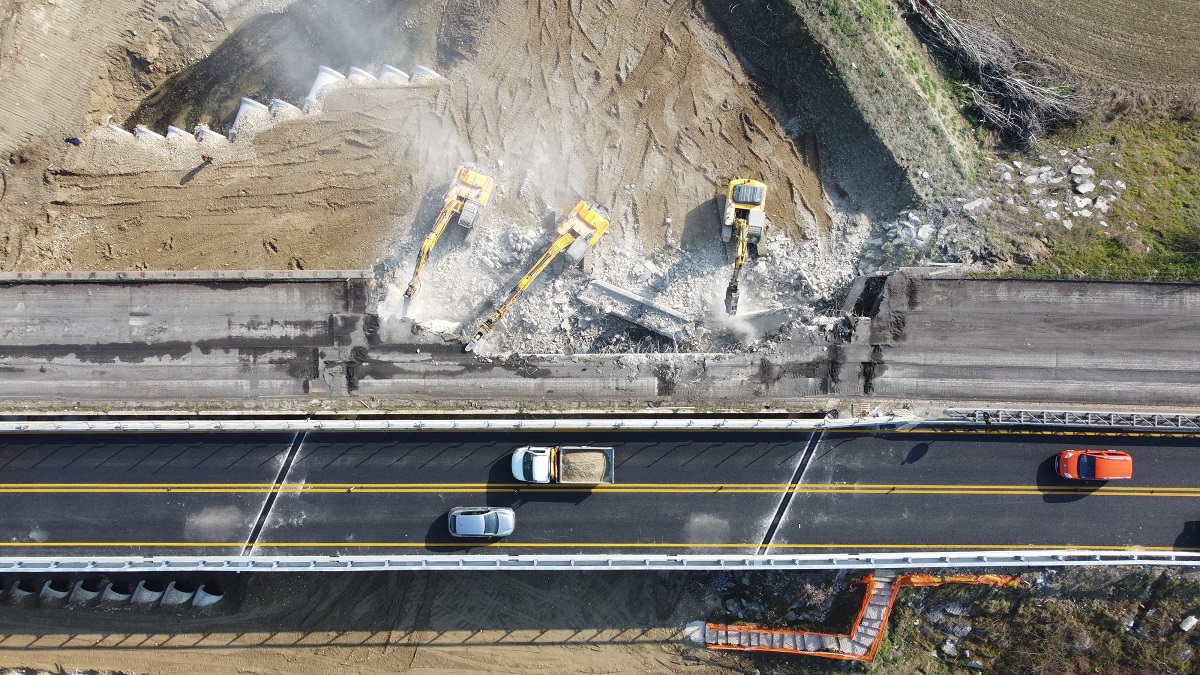 A una settimana dall’apertura al traffico del viadotto al km 1 della Tangenziale di Asti - statale 231 “di Santa Vittoria” lungo la carreggiata in direzione Alba su cui è provvisoriamente convogliata la circolazione in entrambe le direzioni, ieri lunedì 24 febbraio Anas (società del Gruppo FS Italiane) ha completato la demolizione del viadotto parallelo lungo la carreggiata in direzione Asti. Sono in corso la rimozione dei detriti e la pulizia delle aree di cantiere. La demolizione, eseguita tramite pinze meccaniche e martellone in piena sicurezza per la circolazione in transito sulla carreggiata opposta, è stata preceduta dalla rimozione del pacchetto superficiale di asfalti al fine di alleggerire l’impalcato.